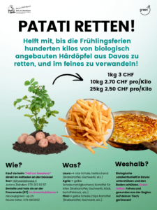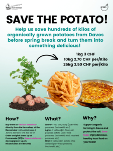 Helft mit, vor den Frühlingsferien Hunderte von Kilo Bio-Härdöpfel aus Davos zu retten und sie in etwas Leckeres zu verwandeln!